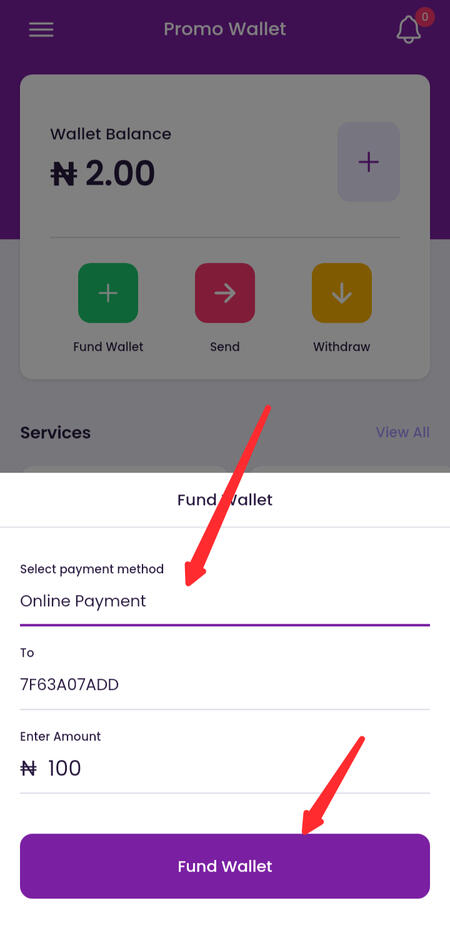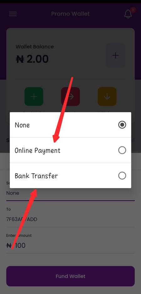 Here is how to fund your wallet using online funding